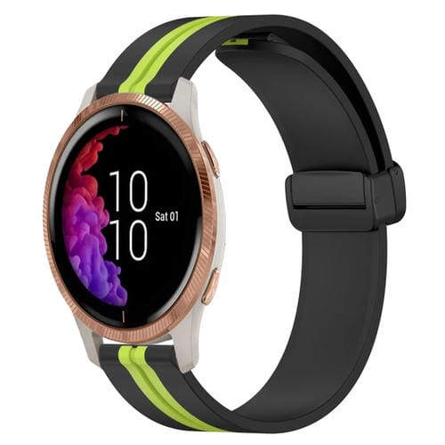 Correa de Reloj para Garmin Venu Silicona Cierre Magnético Plegable 20mm (Negro + Verde Lima)