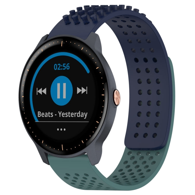 Correa de Reloj de Silicona para Garmin Vivoactive3 Music con Puntos 3D Transpirables y Orificios 20mm (Azul Medianoche + Verde Oliva)