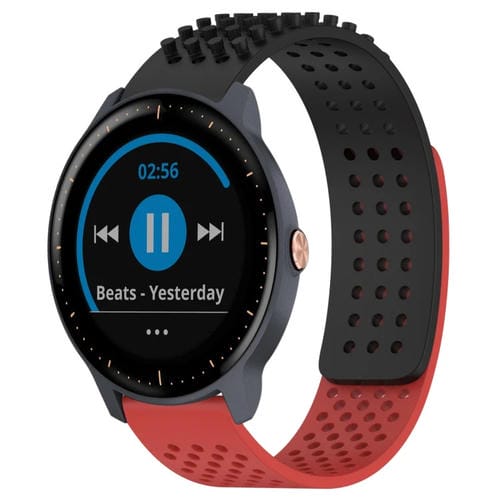 Correa de Reloj Silicona para Garmin Vivoactive3 Music con Puntos 3D Transpirables y Orificios 20mm (Negro + Rojo)