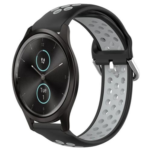 Banda de Reloj de Silicona Deportiva para Garmin Vivomove Style 20mm Transpirable Perforada (Negro + Gris)