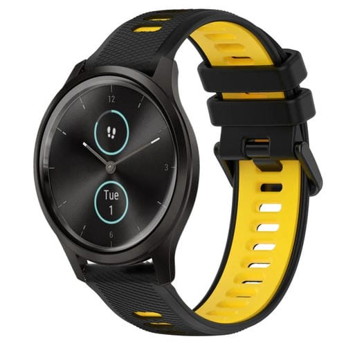 Correa de Silicona para Garmin Vivomove Style 20mm Sports Dos Colores (Negro + Amarillo)