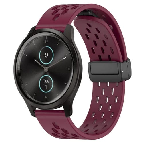 Correa de Silicona para Garmin Vivomove Style con Cierre Magnético Plegable de 20mm (Rojo Vino)