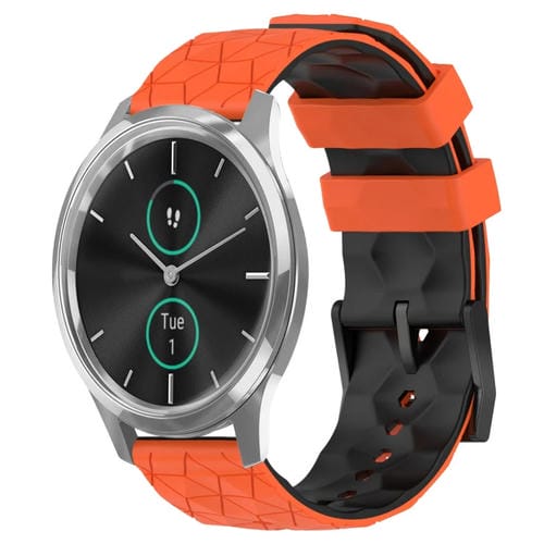 Banda de Reloj Garminmove Luxe 20mm Silicona Dos Colores (Naranja + Negro) Patrón Fútbol
