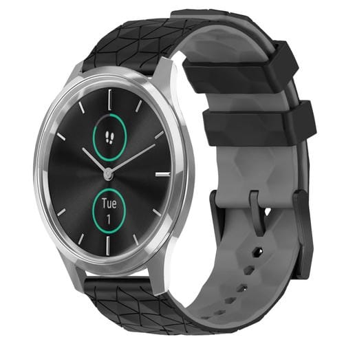 Banda de Reloj Garminmove Luxe 20mm Silicona Patrón de Fútbol (Negro + Gris)