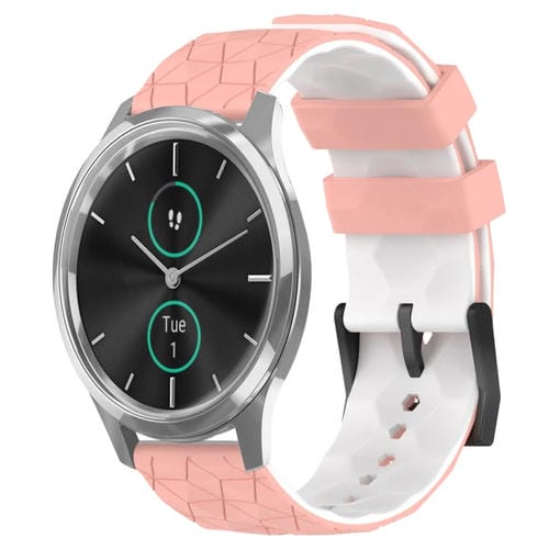Banda de Reloj Garminmove Luxe 20mm Silicona Patrón de Fútbol (Rosa + Blanco)