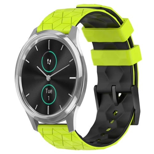 Banda de Reloj de Silicona para Garminmove Luxe 20mm Patrón de Fútbol (Verde Lima + Negro)