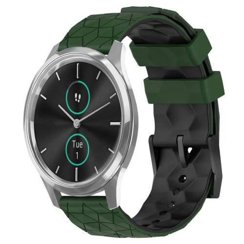 Banda de Reloj Garminmove Luxe 20mm Silicona Patrón de Fútbol (Verde Militar + Negro)