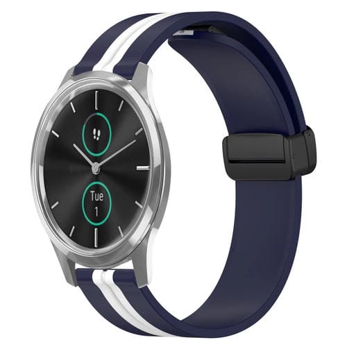 Correa de Silicona para Garminmove Luxe 20mm con Cierre Magnético Plegable (Azul Medianoche + Blanco)