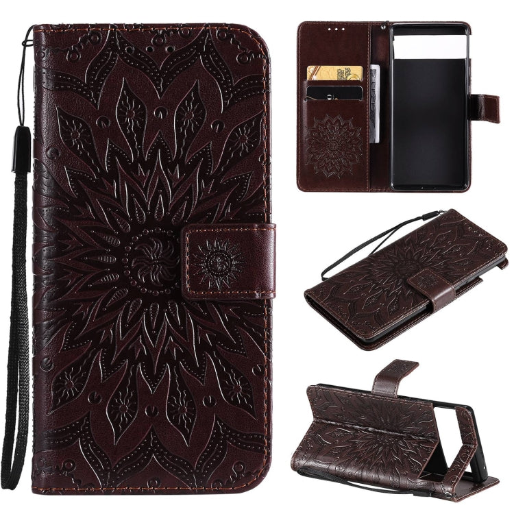 Para Google Pixel 6 Pro Sun Sun Pattern Horizontal Flip Funda de cuero con ranura para tarjeta y soporte y cartera y cordón (Marrón)