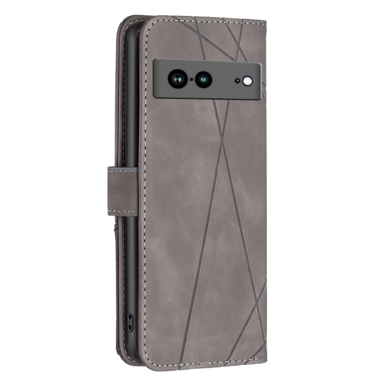 Para Google Pixel 7a Hebilla magnética Rombo Textura Funda de cuero para teléfono (Gris)