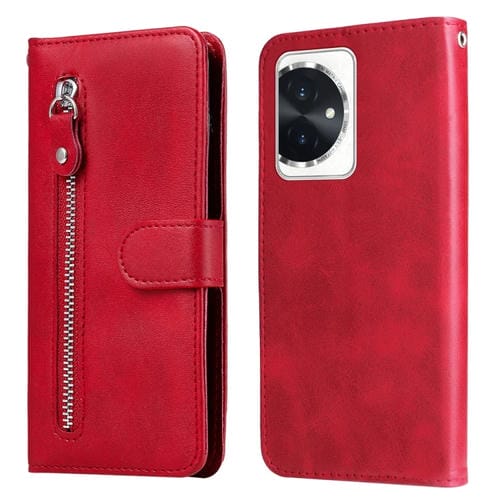 Funda para Teléfono Honor 100 de Cuero con Cremallera y Textura de Becerro (Rojo)