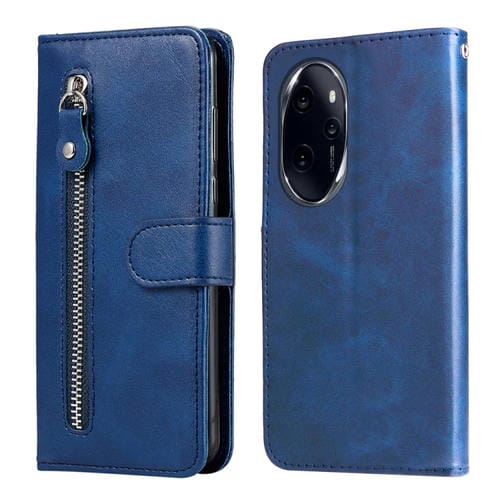 Funda para teléfono Honor 100 Pro de cuero con cremallera y textura de becerro (Azul)