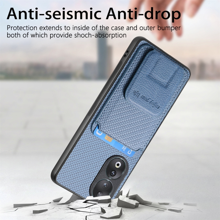Funda para Honor 60 Pro con Soporte Plegable y Bolsa para Tarjetas de Fibra de Carbono (Azul)