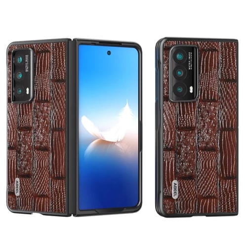 Funda para Honor Magic Vs2 Abeel Cuero Genuino con Patrón Mahjong y Borde Negro (Marrón)