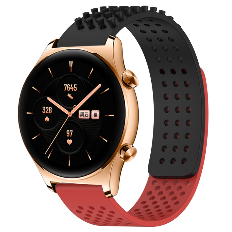 Correa de Silicona para Honor Watch GS 3 con Puntos 3D Transpirables y Orificios 22mm (Negro + Rojo)