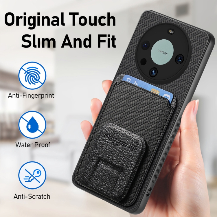 Funda para Honor X40 con Soporte Plegable y Bolsa para Tarjetas de Fibra de Carbono (Negro)