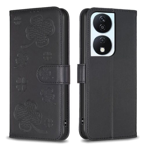 Funda de Cuero para Honor X7B con Relieve de Cuatro Hojas (Negro)