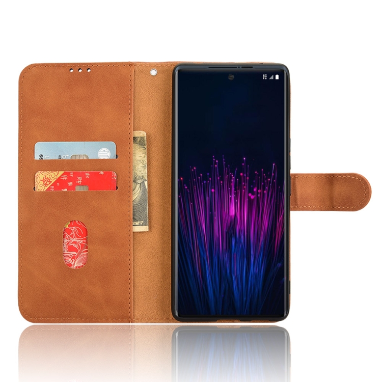 Funda de Cuero con Tapa Magnética para HTC U24 Pro Skin Feel (Marrón)