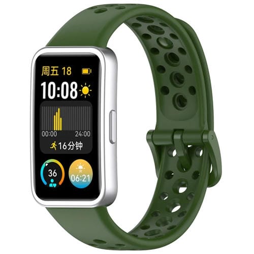 Correa de Silicona para Huawei Band 9/9 Nfc/8/8 Nfc con Botón y Orificio Redondo (Verde Oscuro)