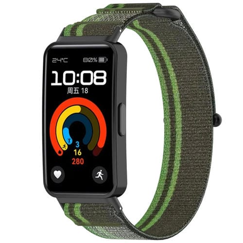 Correa de Reloj para Huawei Band 9 con Cierre de Gancho y Bucle de Nailon (Verde Negruzco)