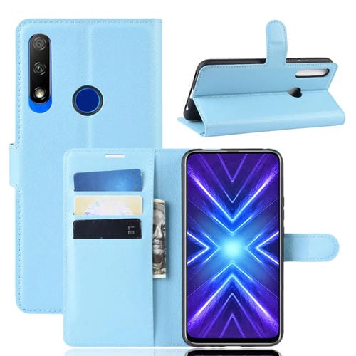 Funda de Cuero Huawei Honor 9X Huella Digital Litchi Texture Tapa Horizontal Billetera Soporte Ranuras (Azul)