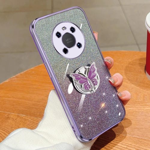 Funda TPU para Huawei Mate 40 con Soporte Mariposa y Brillo Degradado (Púrpura)