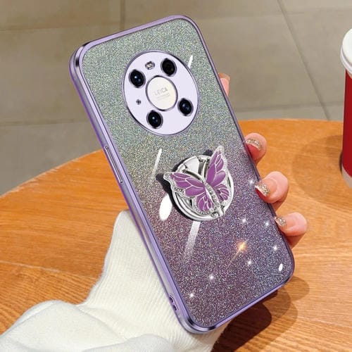 Funda TPU para Huawei Mate 40 Pro con Soporte de Mariposa y Brillo Degradado (Púrpura)