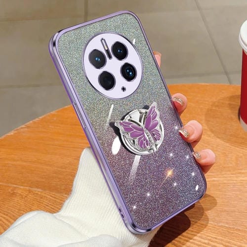 - 1x Funda para Huawei Mate 50 Pro TPU con Soporte de Mariposa y Brillo Degradado (Púrpura)
