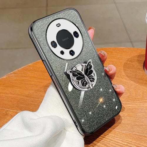 - 1x Funda para Huawei Mate 60 Pro TPU con Soporte de Mariposa y Brillo Degradado (Negro)