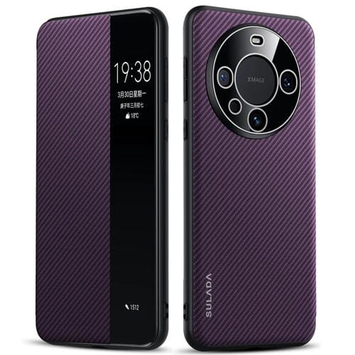 - 1x Funda de Cuero Sulada Kevlar 600D para Huawei Mate 60 Pro Smart Window (Púrpura)