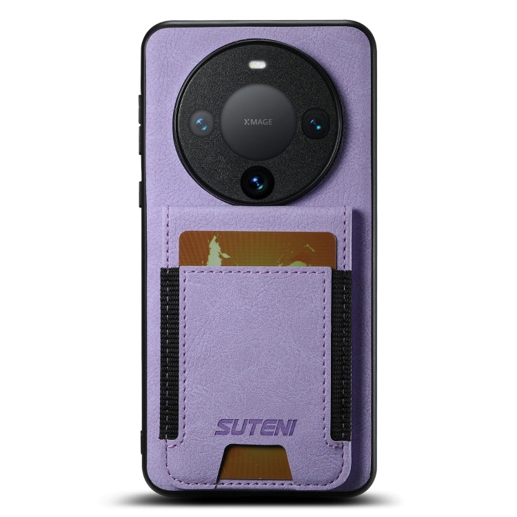 Funda para Huawei Mate 60 Pro Suteni H03 con Soporte para Tarjeta de Cuero Litchi (Púrpura)