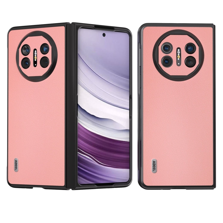 Funda para Huawei Mate X5 Abeel con Borde Negro Ondulado de Cuero Genuino (Rosa)