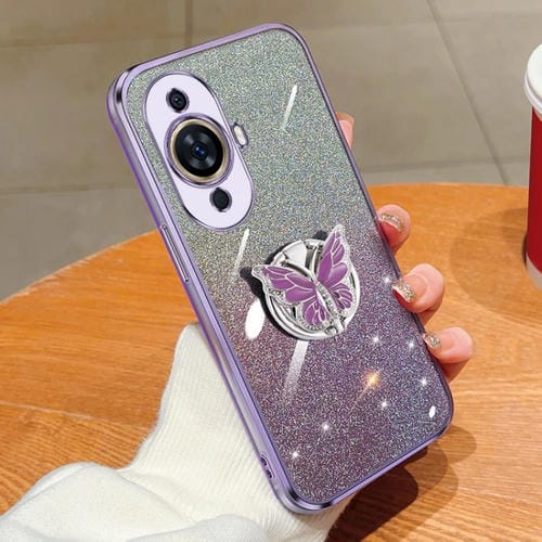 - 1x Funda TPU para Huawei Nova 11 con Soporte de mariposa y brillo degradado (Púrpura)