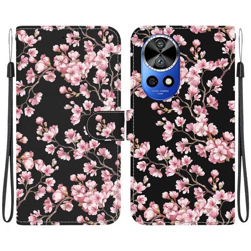 - 1x Funda de Cuero para Huawei Nova 12 Pro con Dibujo Coloreado y Textura de Cristal (Flor de Ciruelo)