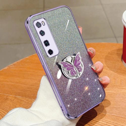 - 1x Funda TPU para Huawei Nova 7 Pro con Soporte de mariposa y brillo degradado (Púrpura)