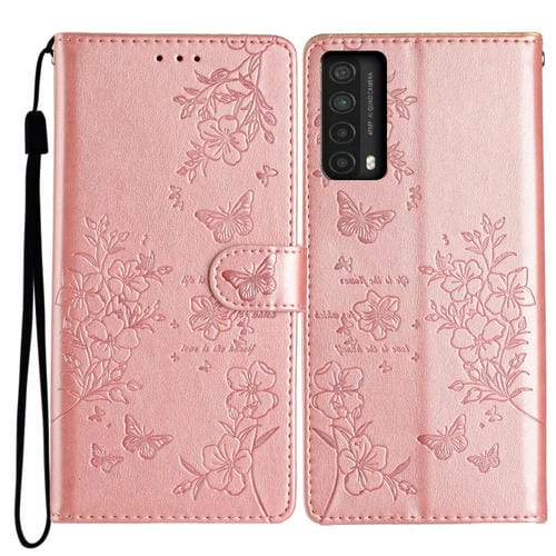 - 1x Funda de Cuero para Huawei P Smart 2021 y Y7A con Relieve Flor y Mariposa (Oro Rosa)