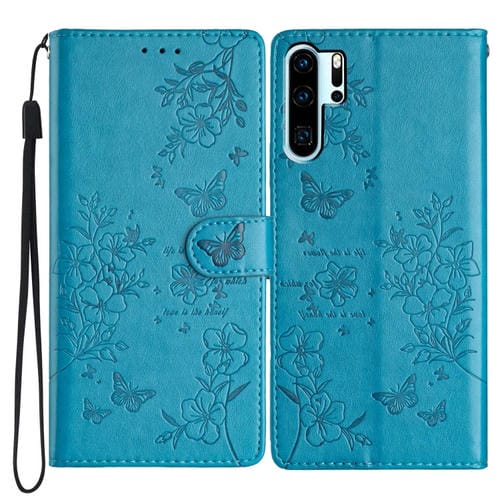 - 1x Funda de Cuero En Relieve Butterfly Love Flower para Huawei P30 Pro (Azul)