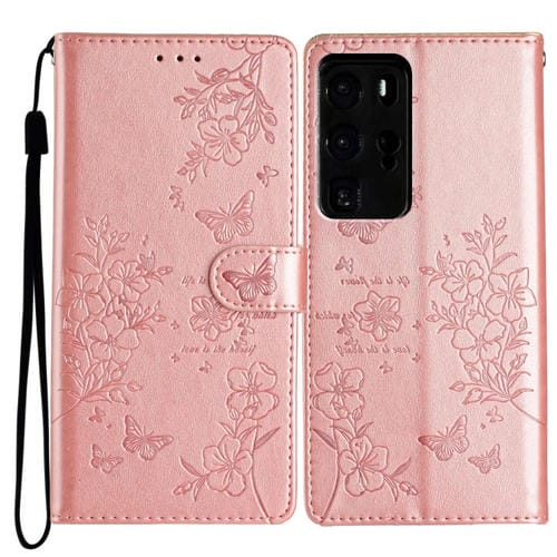 - 1x Funda de Cuero para Huawei P40 Pro Butterfly Love Flower en Relieve (Oro Rosa)