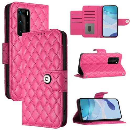 - 1x Funda de Cuero para Huawei P40 Pro con Tapa Textura Rómbica y Cordón (Rojo Rosa)