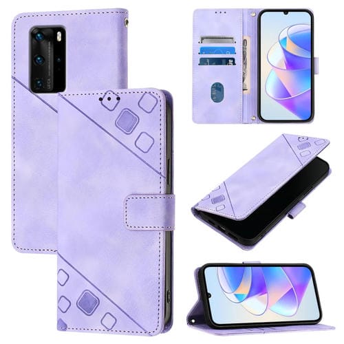 - 1x Funda de Cuero Skin Feel para Huawei P40 Pro en Relieve (Púrpura Claro)