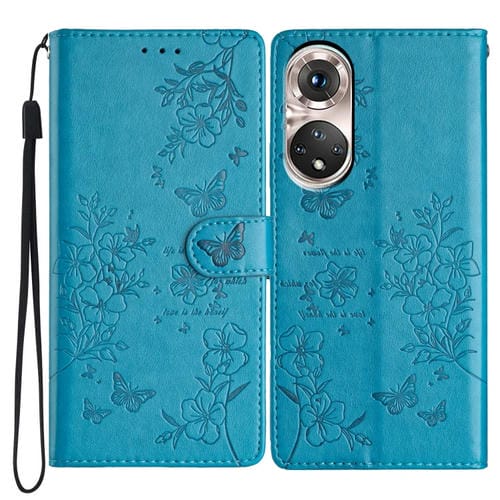 - 1x Funda de Cuero para Huawei P50 Pro Butterfly Love Flower en Relieve (Azul)