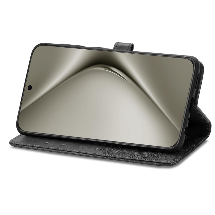 Funda de Cuero para Huawei Pura 70 con Relieve de Flores Mandala (Negro)