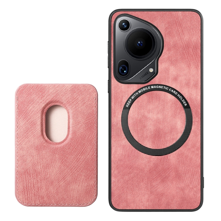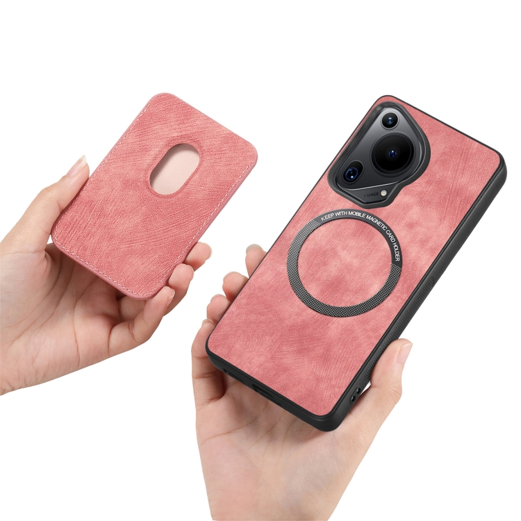 - 1x Funda para Huawei Pura 70 Magnética con Bolsa de Tarjeta de Cuero Retro (Rosa)