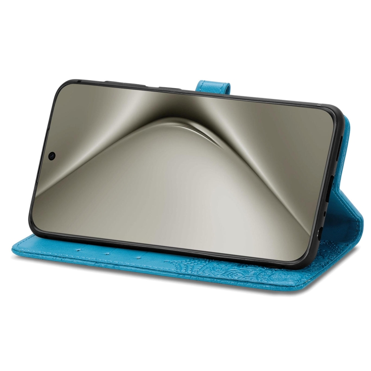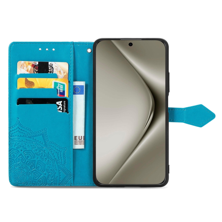 Funda para Huawei Pura 70 de Cuero con Relieve de Flores Mandala (Azul)
