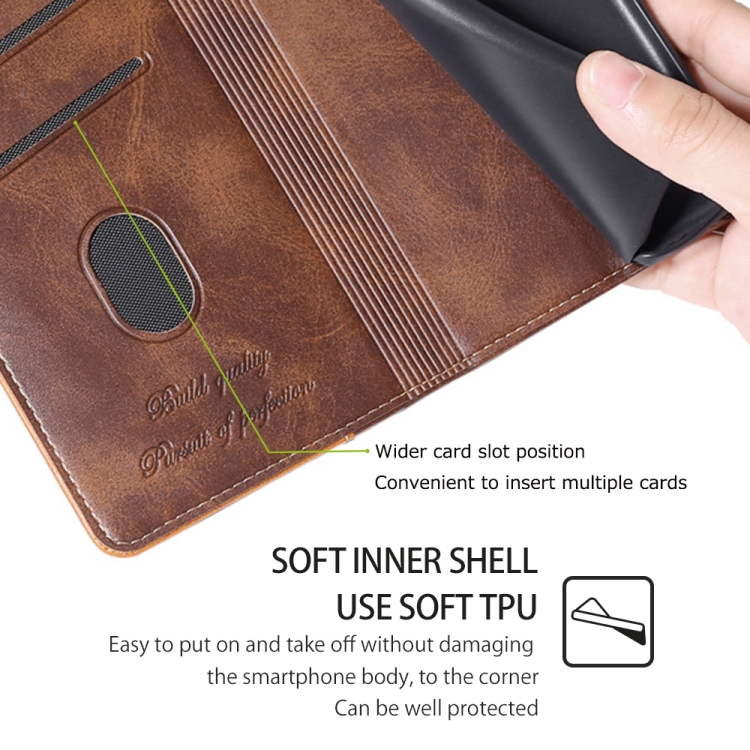 Funda de Cuero para Huawei Pura 70 Pro / 70 Pro + 5G con Hebilla Lateral (Marrón Oscuro + Dorado)