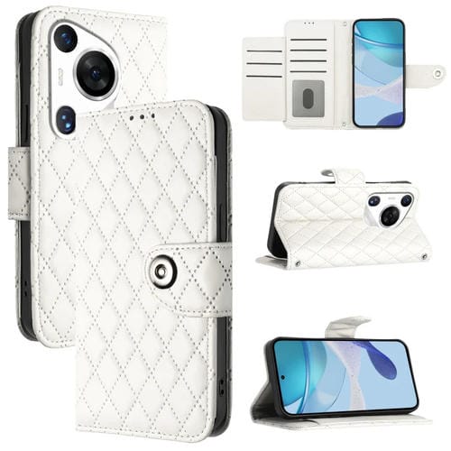 - 1x Funda de Cuero para Huawei Pura 70 Pro con Tapa Textura Rombal y Cordón (Blanco)