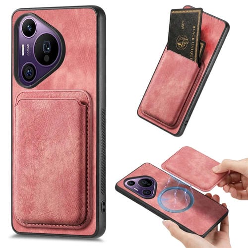 - 1x Funda para Huawei Pura 70 Pro magnética con Bolsa de Tarjeta de Cuero retro (Rosa)