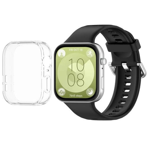 Correa de Silicona para Huawei Watch Fit3 + Funda Protectora Transparente (Negro)