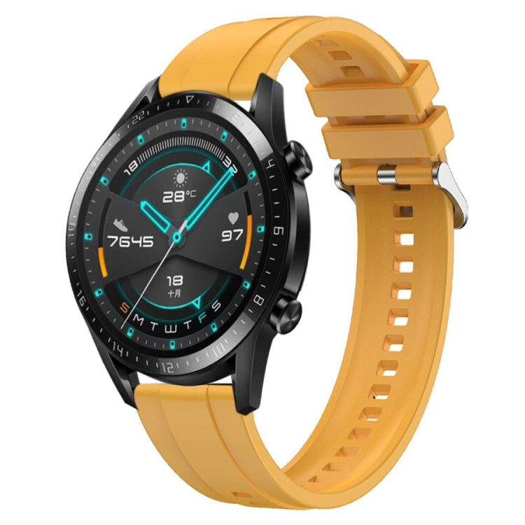 Correa de Silicona para Huawei Watch GT 42mm/46mm Patrón de Neumático con Hebilla Plateada (Amarillo)