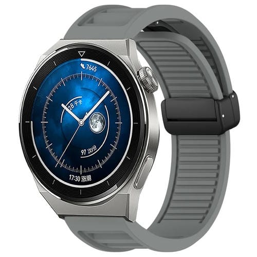 Correa de Reloj Silicona Huawei Watch GT3 Pro 46mm 22mm Hebilla Magnética Plegable (Gris)
